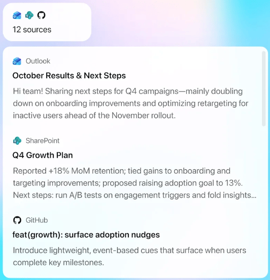 Replace one manual search - next time you'd normally check multiple apps, use Company Knowledge instead