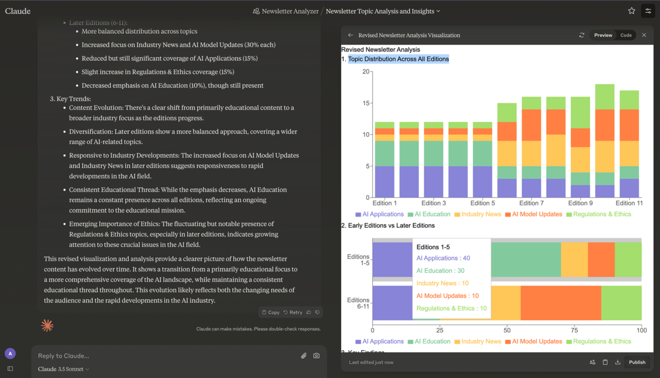 In this edition, we're exploring how to use Claude's projects feature. We'll show you how we used it to analyze our newsletters and keep consistency across multiple issues over time.