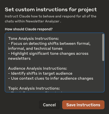 Here's how we used Claude's projects feature to create our Newsletter Analyzer: