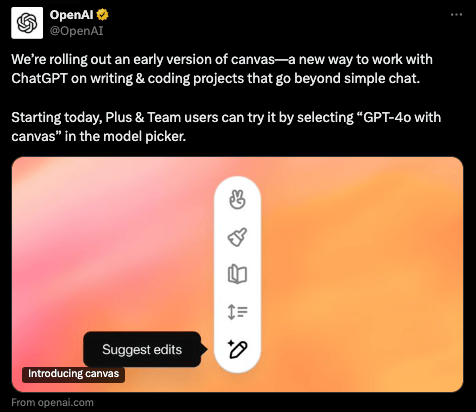 OpenAI Launches Canvas for Writing and Coding Collaboratively with ChatGPT