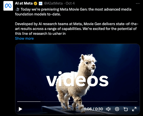 Meta’s new Movie Gen model generates realistic video with sound based on text prompts, though it is not publicly available. The model includes features like text-based editing and generates up to 16 seconds of video.