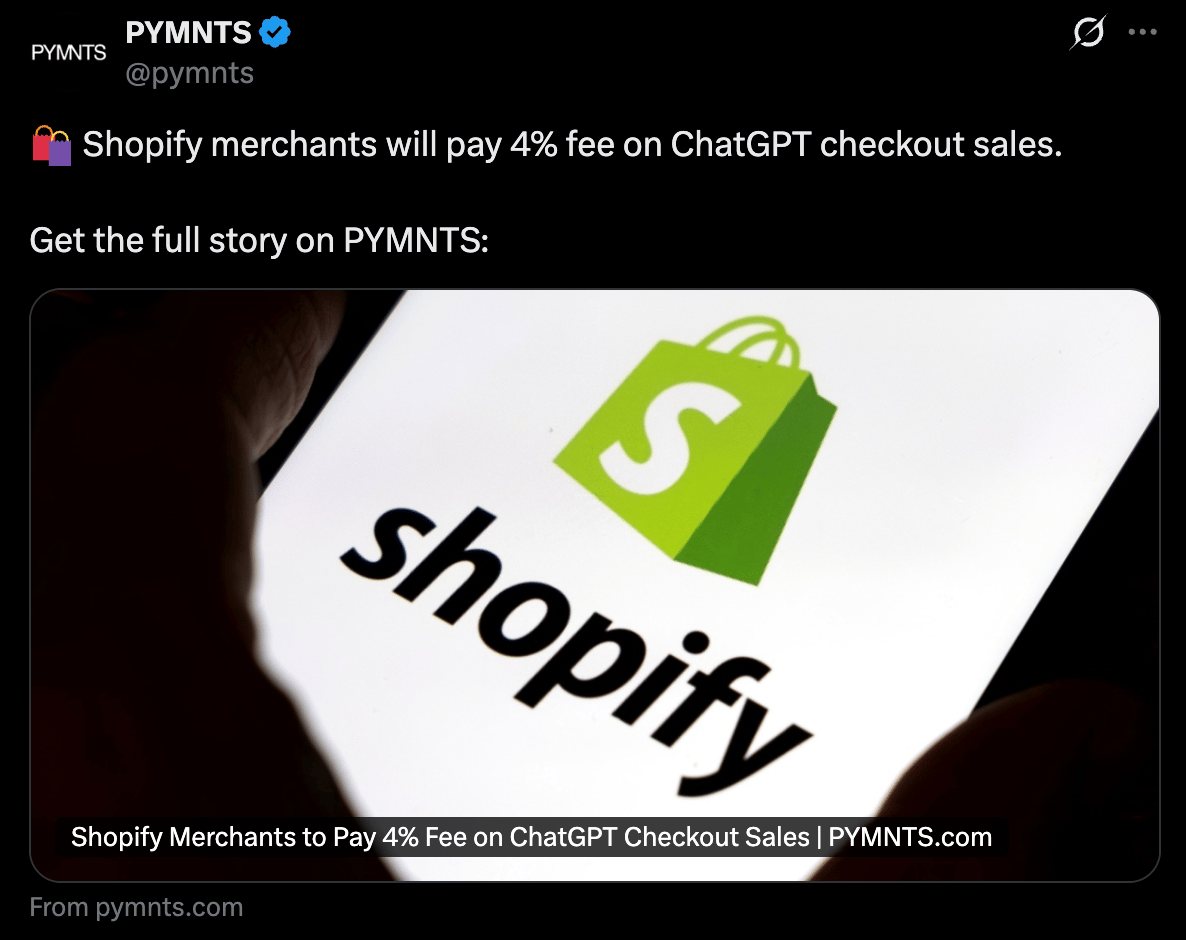 The 4% fee works if ChatGPT brings you new customers. The problem is when someone already wants your product and just happens to check out through ChatGPT instead of your website. Then you're paying what feels like a tax for convenience. OpenAI needs to prove they're creating demand, not just processing payments that would've happened anyway. |