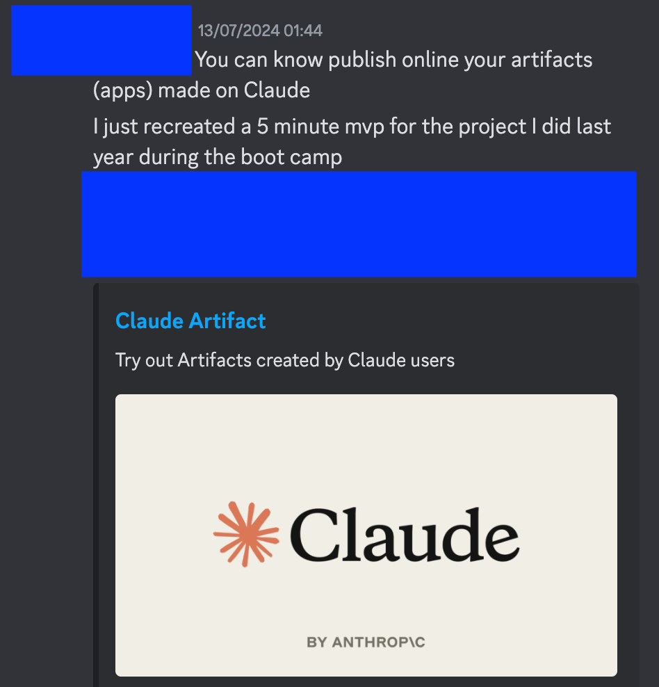 After Anthropic's release of the Artifacts publishing feature, one of our bootcamp graduates wasted no time recreating his project prototype. We love seeing this creative spirit in action!