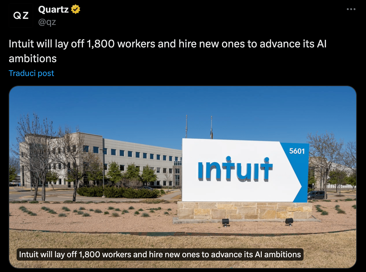 In a bold move towards AI adoption, Intuit, a major tech company, is reshuffling 10% of its workforce, bringing in new skills and knowledge. Is this the right strategy? We’ll tell you how we see it. 👇