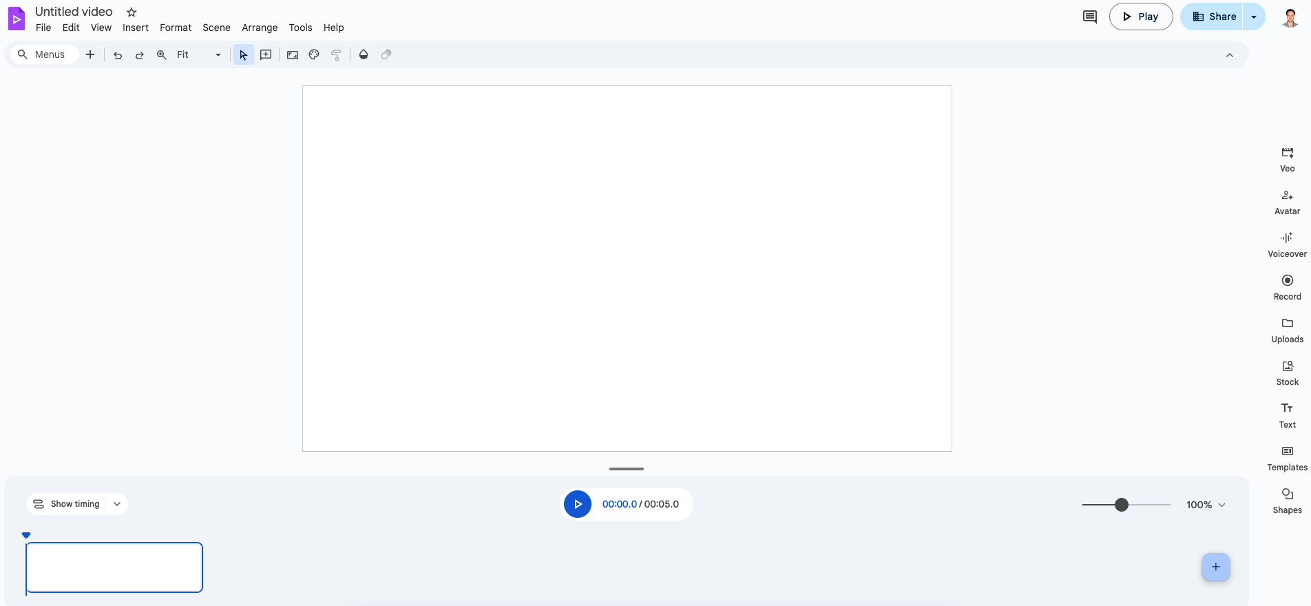Once clicked, you'll see a blank canvas with a toolbar on the right side showing different features you can add to your video.
