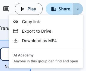 Export to Drive - Saves an MP4 to your Google Drive. Good if you want to keep it in Drive and share from there.