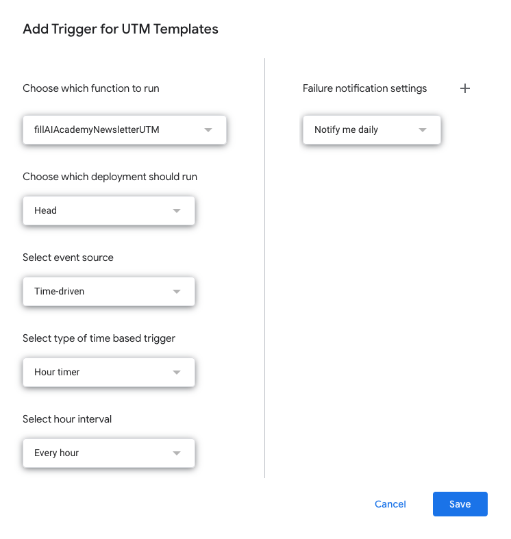 How do I set up a trigger so this script runs [when/how often]? Provide step-by-step instructions.Common trigger types: